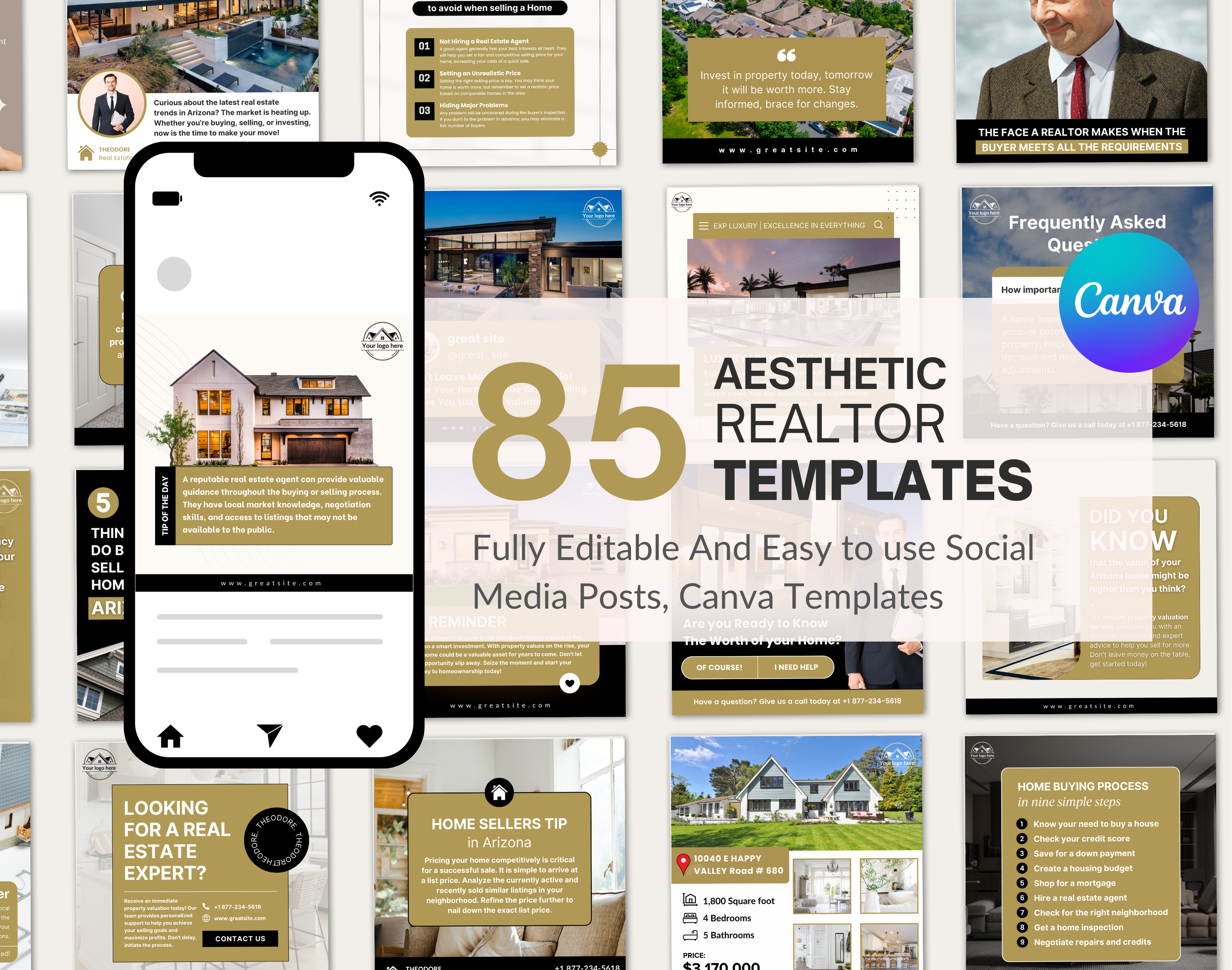 85 realtor Instagram post templates created in Canva (1080x1080px). Easily customize colors, fonts, text, and photos to match your brand.